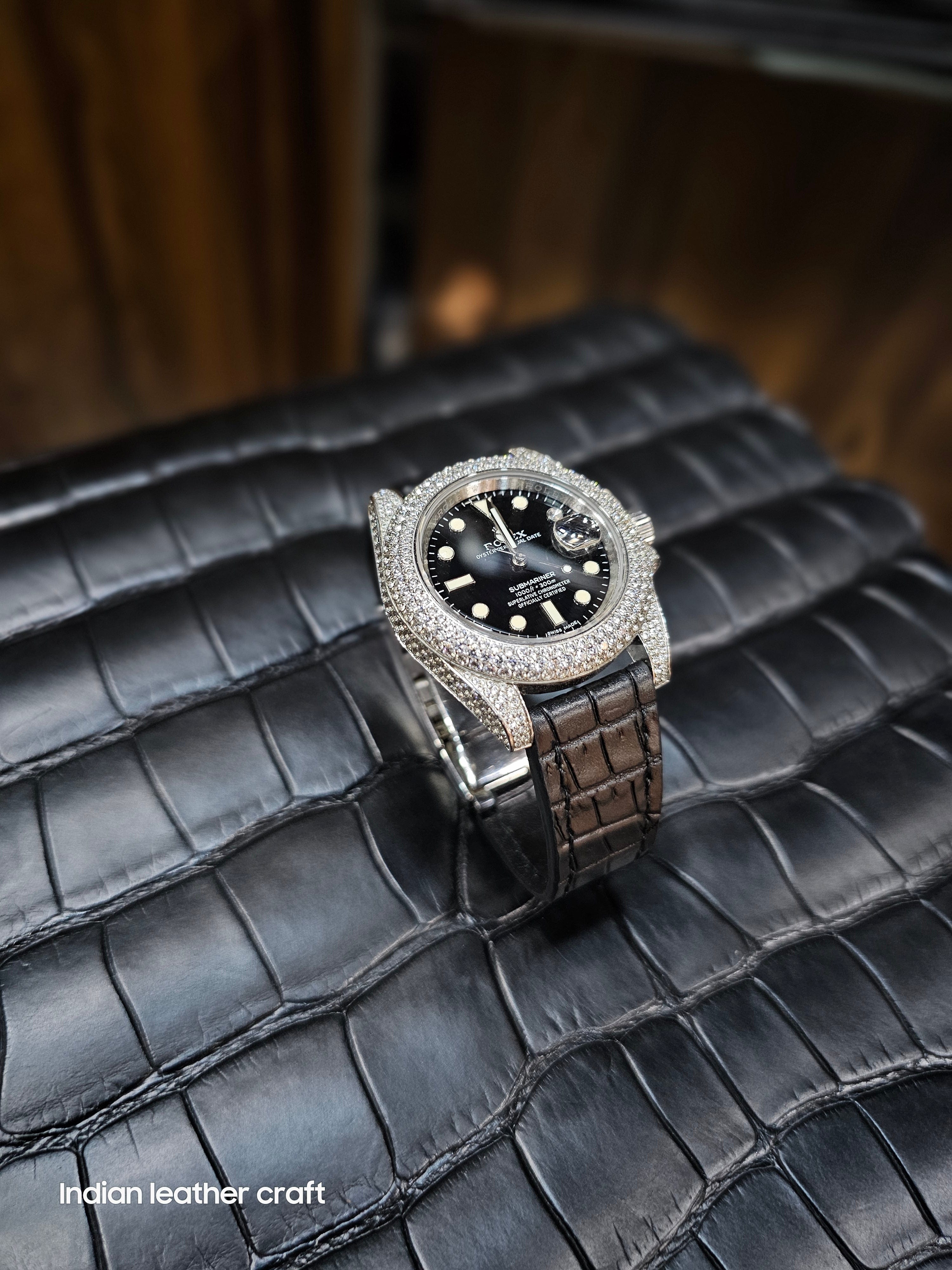 Get Quote20mm Black crocodile leather strap for Rolex designed to fit Rolex clasp
