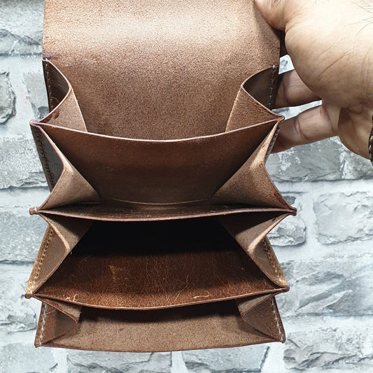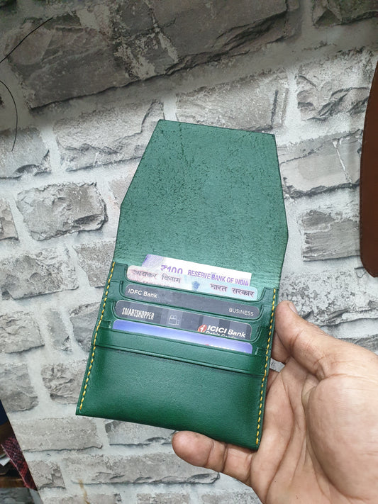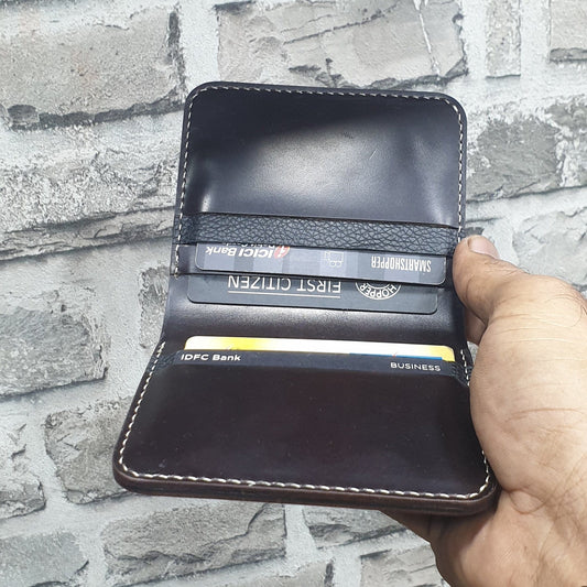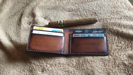 Very well made wallet. I got my requirements customized 3+3 card slot bifold traditional wallet. The leather quality and stitching is of high quality. Very nice soft feel to it. Shipping time could be faster.
