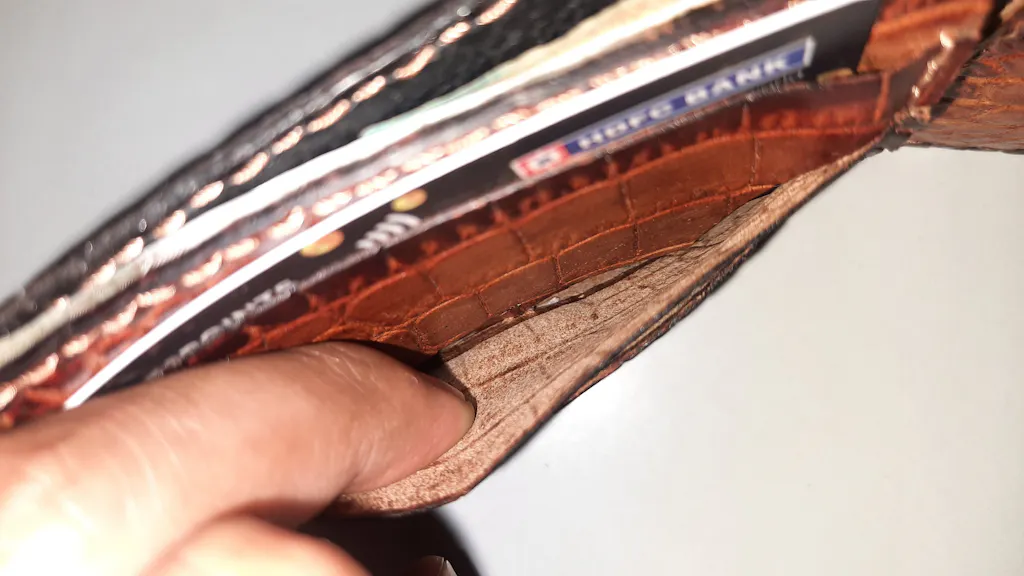 Quality of the leather is great. However, card pockets are unstitched whcih makes your cards just slide down and not visible. Only a mere stitch at the center inside making the card placement uneven, whenever you open the wallet it looks all messy due to this. Also, the pockets cut arent symmetrical. When you pay a fair amount for a handstitched wallet and with a wait period of 3 weeks. You do not expect such errors. Also, I had to chase for the Tracking no. wherein it should be shared proactively. Not satisfied.