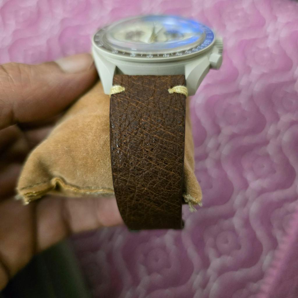 Omega moonswatch leather strap made in finest quality leather with neat stitching and design that stands out.